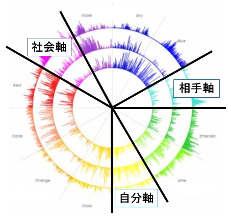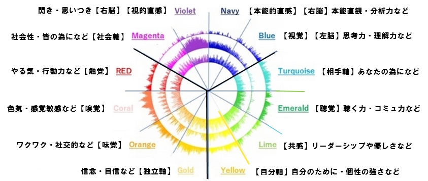 などが3つの円と色彩心理学的な解釈をした12色のカラーで客観的に可視化します。